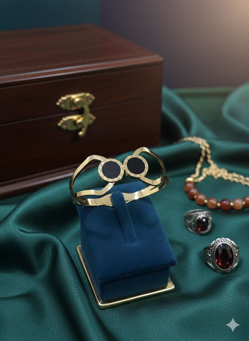 This elegant anti-tarnish kada features a sophisticated round design with a sleek black finish that resists oxidation and discoloration. Crafted with premium materials, it maintains its lustrous appearance through daily wear without requiring frequent polishing. The dual circular bands create a contemporary aesthetic while the anti-tarnish coating ensures long-lasting brilliance. Perfect for those seeking a low-maintenance piece that combines traditional kada styling with modern durability. An ideal choice for everyday elegance and special occasions alike.