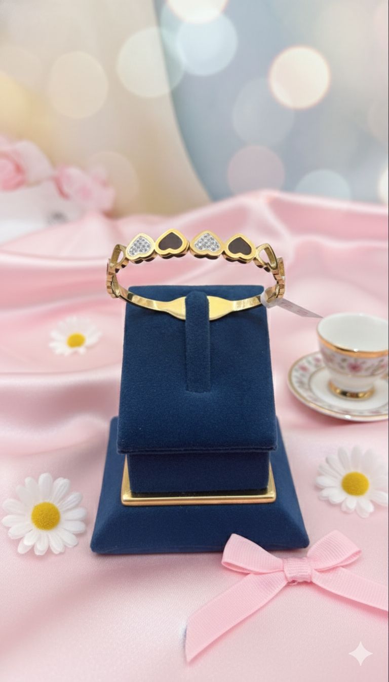 This elegant bangle features a striking black and white love pattern, expertly crafted with anti-tarnish properties to maintain its lustrous finish for years. The timeless design seamlessly blends contemporary aesthetics with romantic symbolism, making it an ideal accessory for both everyday wear and special occasions. The anti-tarnish coating ensures minimal maintenance while preserving the bangle's brilliance and color integrity. Perfect for those who appreciate jewelry that combines durability with sophisticated style, this piece serves as a versatile addition to any collection.