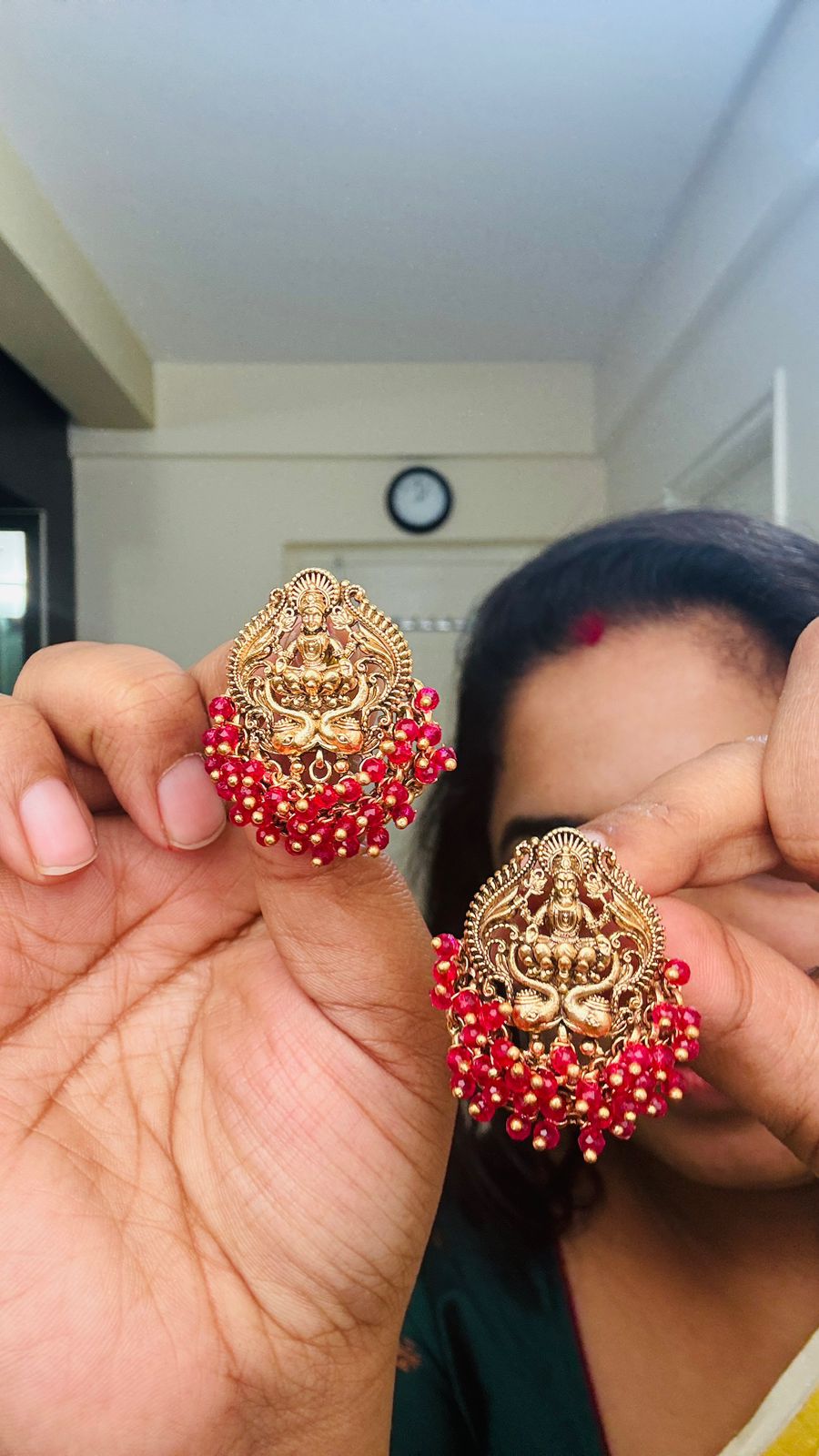 Invoke divine blessings with this exquisite Goddess Lakshmi pendant necklace, meticulously crafted to honor the deity of wealth, prosperity, and abundance. The central pendant features intricate detailing that captures Lakshmi's sacred essence, making it a meaningful addition to your spiritual jewelry collection. Suspended from a refined chain, this piece seamlessly transitions from devotional wear to everyday elegance. Perfect for those seeking to connect with prosperity consciousness or gift a cherished symbol of good fortune to someone special.