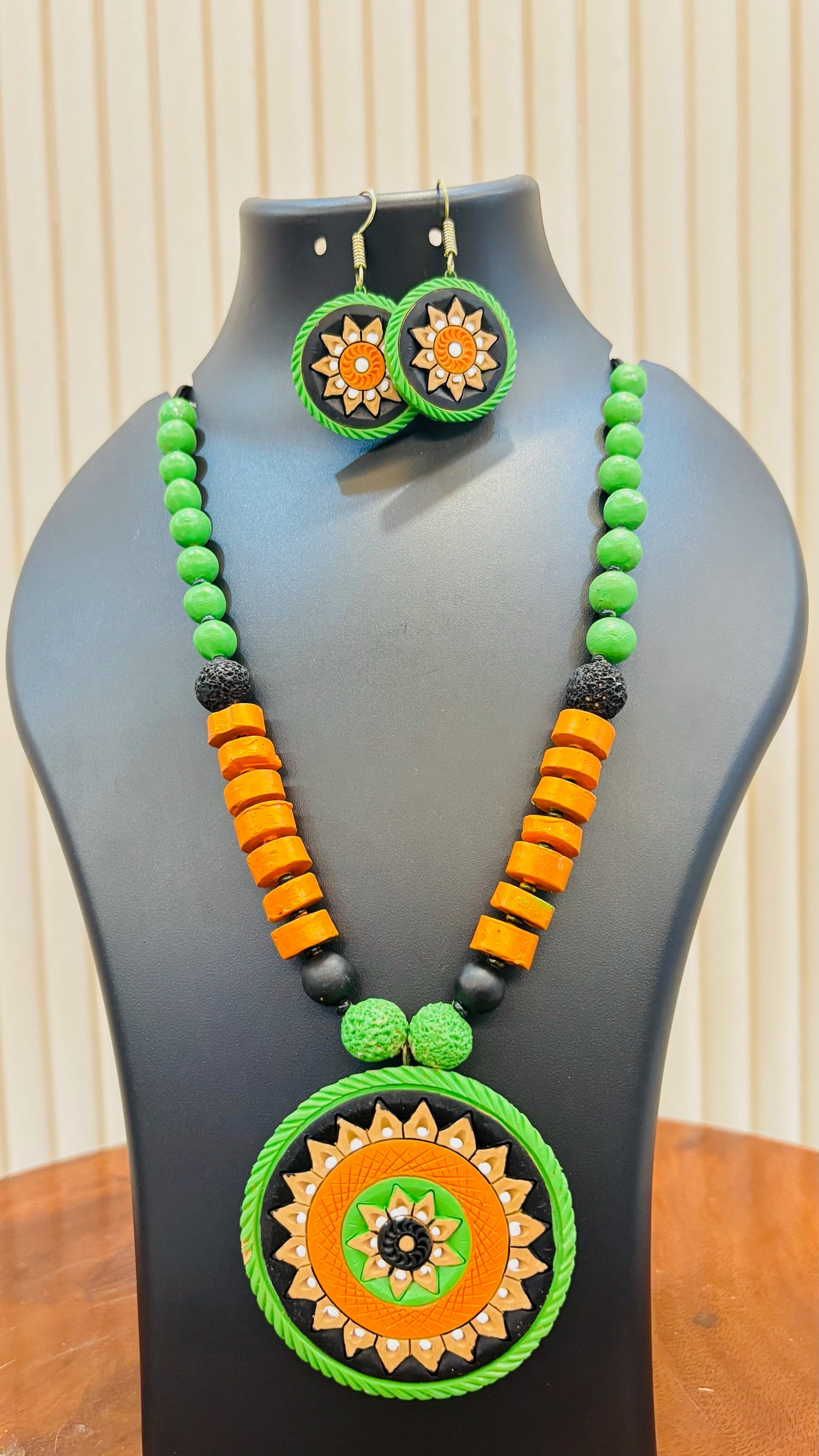 Elevate your ethnic ensemble with this striking round pattern terracotta haram, a timeless piece that seamlessly blends traditional craftsmanship with contemporary style. Crafted from warm terracotta tones, the geometric round patterns create visual depth and movement, making it an ideal accessory for festive occasions, weddings, or everyday wear. The earthy hue complements all skin tones and pairs effortlessly with traditional sarees, lehengas, and fusion outfits. This versatile haram brings authentic artisanal appeal to your jewelry collection while offering the lightweight comfort you deserve.