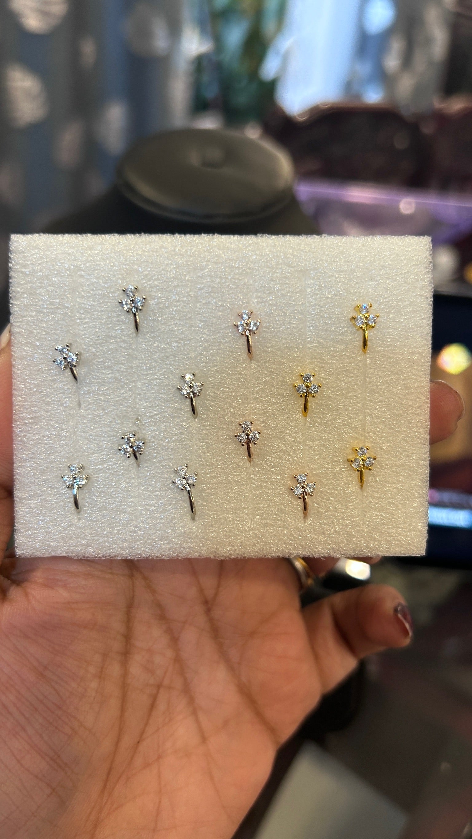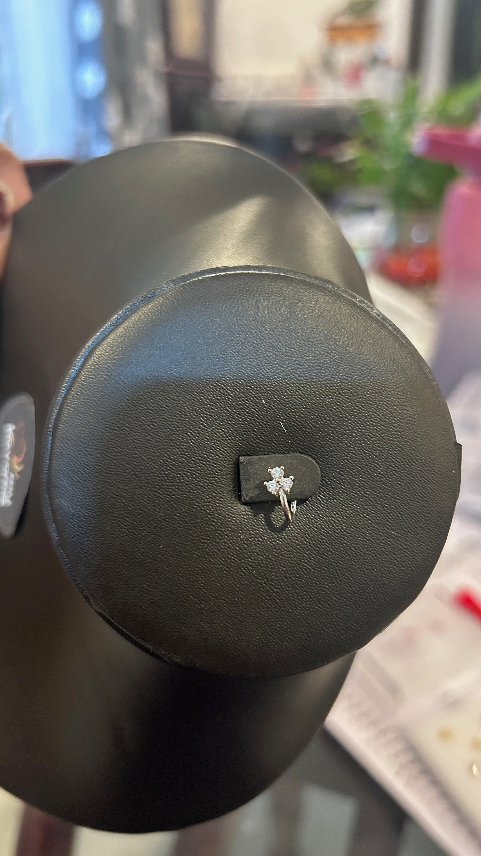 Elevate your nasal aesthetic with this expertly crafted Tristone press-on nosepin, designed for effortless application and secure wear. Featuring premium-quality stone detailing, this nosepin delivers sophisticated elegance without the commitment of piercing. The innovative press-on mechanism ensures a comfortable, non-invasive fit that stays in place throughout your day. Perfect for special occasions or everyday glamour, this versatile accessory complements any complexion and style. Experience the confidence of fine jewelry aesthetics with the convenience of temporary wear.